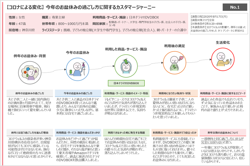 CEPは消費者がカテゴリーを検討する「入り口」となる思考や文脈です 。無関心層の攻略には、このスイッチの特定が欠かせません 。メモリートレース™では、W’sフレームワークを用いたナラティブ調査と生成AIを組み合わせ、一人ひとりの「体験の語り」から具体的な利用コンテクストを把握します 。潜在ニーズを網羅し、戦略の土台となる漏れのないCEPリストを生成します 。
